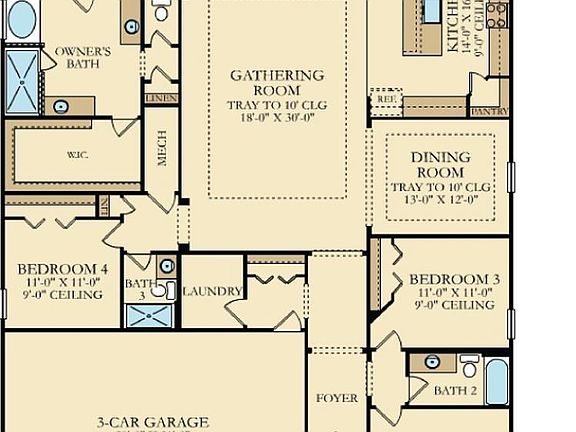 - Ceiling Fan(s), High Ceilings, Split Bedroom Plan