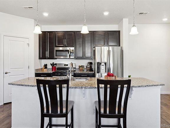 Step into your beautiful home where sunlight fills every corner, creating an atmosphere of warmth and comfort. Picture waking up in a bright sanctuary that greets you with natural light and invites you to unwind. Recently updated with new carpet, paint, modernized cabinetry and sleek hardware, this home is a stunning retreat that’s completely move-in ready. Thoughtfully designed with 2 private en-suite bedrooms at opposite ends, your home offers the perfect balance of comfort and privacy. Here the layout flows effortlessly, offering spaces that are both inviting and enjoyable. The open living area connects seamlessly with the chef-inspired kitchen where the wonderful breakfast bar, six-burner gas range and extensive prep space make entertaining a delight. Picture yourself enjoying meals with friends- this space is made for connection. Beyond the kitchen, the outdoor living area beckons- ideal for morning coffee, sunset dinners or gatherings. An oversized 2-car garage offers extra storage space to its thoughtful design. Wheatlands offers more than just a home- it’s a community that elevates your lifestyle. Whether you’re enjoying a swim in the sparkling outdoor pool, playing a game of pickleball or exploring scenic trails, every day feels like a vacation. Residents enjoy exclusive access to the Wheatlands Rec Center, featuring an indoor pool, state-of-the-art fitness facilities & classes, in addition to the Wheatlands Pool & Community Center. Year-round events bring neighbors together, offering opportunities to connect, relax and create memories. Enjoy the parks or trails leading to the Aurora Reservoir where you can paddleboard, fish or unwind by the water- or to the lively Southlands entertainment complex offering something for everyone. With the added benefit of being in the highly sought-after Cherry Creek School District, this home isn’t just an investment in a property, it’s an investment in a lifestyle. Come, relax, refresh, and create memories of a lifetime.