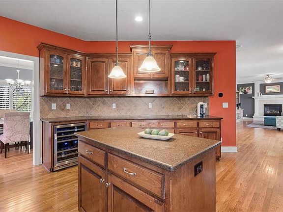 Discover the Timbers at Clear Creek, an inviting community in West Lenexa! This spacious 3,552-square-foot home offers an inviting kitchen with granite countertops, island seating, and stainless steel appliances including a new wine fridge. Cozy up by the gas fireplace in the hearth room or enjoy outdoor gatherings on the oversized patio with gas heaters inside a large fenced yard. The lower level features a recreation room, game room, bar, and full bath for added convenience. Upstairs, the primary bedroom boasts a relaxing sitting area, spa-like bathroom, and walk-in closet. Conveniently located near nature trails, Wild Bill Hickok Park, and Clear Creek Regional Wetlands. Plus, easy access to award-winning De Soto Schools and 1 mile from St. James Academy. You'll also find convenience to several golf courses, shopping, dining, and easy hwy access. Embrace the easy lifestyle of West Lenexa at this exceptional home!