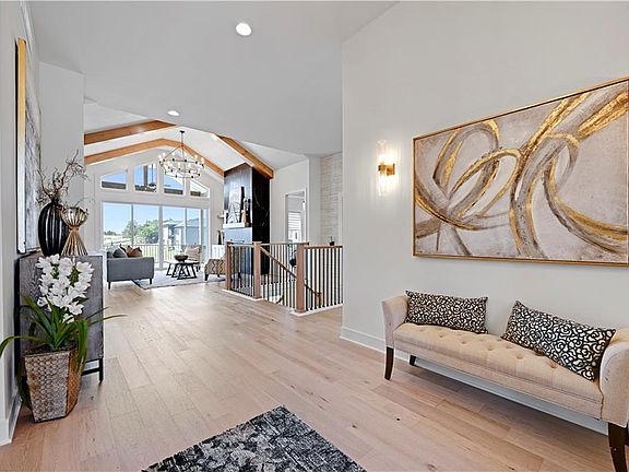 The Willow II by JFE Homes – A True Showstopper! **PRICE REDUCED**MOVE IN READY** From the moment you arrive, The Willow II captivates with its stunning curb appeal—a sleek double glass front door and modern garage door with side glass windows. Inside, soaring ceilings, walls of windows, and a vaulted great room with striking beams create a breathtaking first impression. A large sliding glass door seamlessly extends your living space to the covered deck, complete —perfect for relaxing or entertaining. The chef’s kitchen is a dream, featuring custom cabinetry, an oversized island, quartz countertops, a butler’s pantry, and premium stainless steel appliances—blending function and style effortlessly.