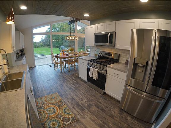 If you're looking for that "country feel" you're gonna LOVE this one! Completely remodeled brick ranch on 1.5 acres! 3 bedrooms on the 1st floor with a 4th in the newly renovated basement with walk in closet! Tons of natural light with a wall of windows on the back of the house! 2 living areas, each with its own wood burning fireplace. This entire home has had a top to bottom renovation in 2021. It includes: New roof, gutters/downspouts, high efficiency furnace, central A/C, glass block windows, finished basement, all new flooring, 2 remodeled bathrooms, new H2O tank, new windows, all new exterior doors, brand new kitchen with all new stainless steel LG appliances, New landscaping, Updated 100amp service panel, garage door opener, waterproofed basement and MUCH MORE!
