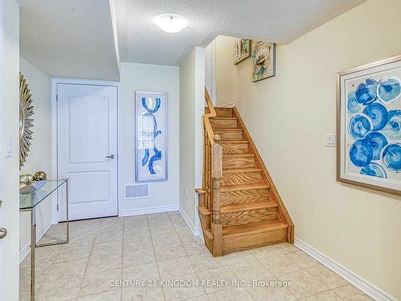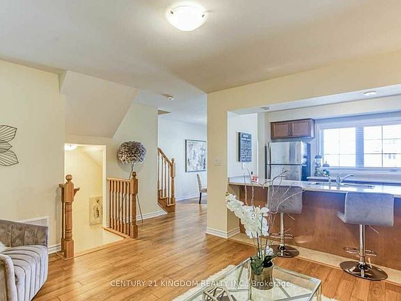 This Beautiful Freehold Mattamy Built Townhome "Dorchester" Model Is Perfect For First Time Home Buyers, Investors, Young Family In Highly Sought After, Family Friendly Neighbourhood. Functional Layout. Numerous Builder Upgrades Incl Larger Foyer/Flex Space On Main, Oak Stairs, Open Concept Kitchen Stainless Steel Appliances, & Convenient Breakfast Bar. Formal Dining Room Walk-Out To Private Balcony For Entertaining Or Enjoying Morning Coffee. Hardwood Flooring On Oak Staircase Leading To 3rd Floor. Convenient 3rd Floor Laundry. Primary Bedroom Features Walk-In Closet And 4-Piece En suite. Uniquely Located In Natural Heritage Area W/ Beautiful Trails And Ravines In Walking Distance, Just Minutes To Transit, Plazas, Golf, Close To Hwy 407&401. Large 2-Car Driveway No Sidewalk