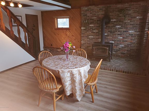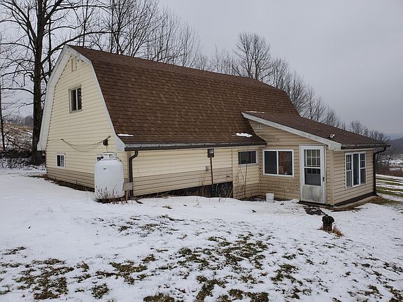 This 1 1/2 story contemporary home was built in 1980 & has approx. 1,200.sf+ of LA. Open floor plan on the first floor offers a LR with DA & a vaulted ceiling. There is also a wood heater, large wagon wheel overhead light & a picture window to enjoy the beautiful country view, Working kit. with laundry hookup. 1 bedroom & a full bath. Spacious sleeping loft with balcony & plenty of storage area under the eves. In the crawlspace area above the second floor ceiling, there is a heat & humidity control system for use in lieu of air conditioning. New carpeting & laminate flooring. Freshly painted interior. Enclosed 12'x12'+- sun porch/mudroom with new indoor/outdoor carpeting. El. BB & LP Gas space heater. Slab foundation. Oversized 24'x31', 2 car gar. with 2nd floor. Incl. O+G rights & royal.