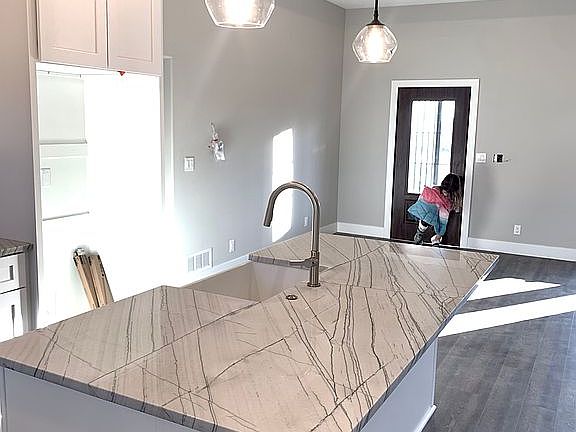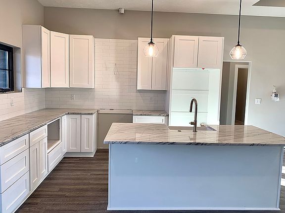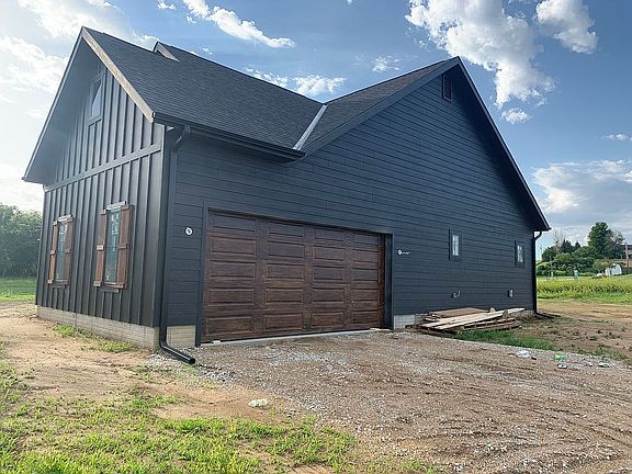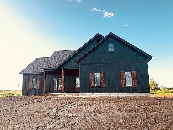 Black Modern Farmhouse with country living, and great paved highway access. You will feel very close to nature with established trees and brome grass throughout most of this two acre lot. 5 minutes from schools and stores. Low taxes. No water bill, no HOA fees. Great neighbors. Perfect front porch to sit and watch the deer wander by, great back porch for a weekend barbeque. Well built and well insulated to protect your investment. High end Invictus quartzite countertops throughout in a very open concept house that will be great to entertain.