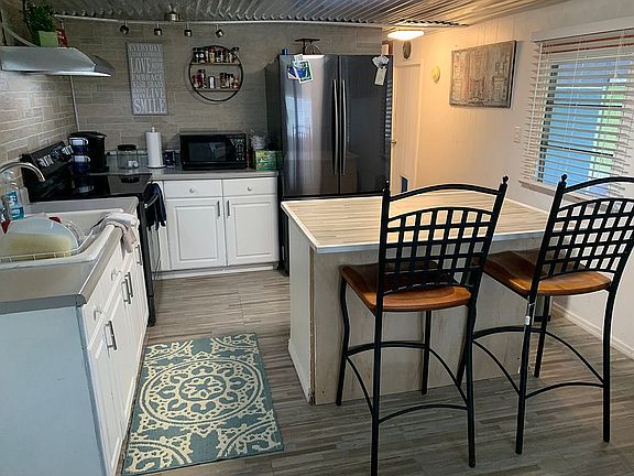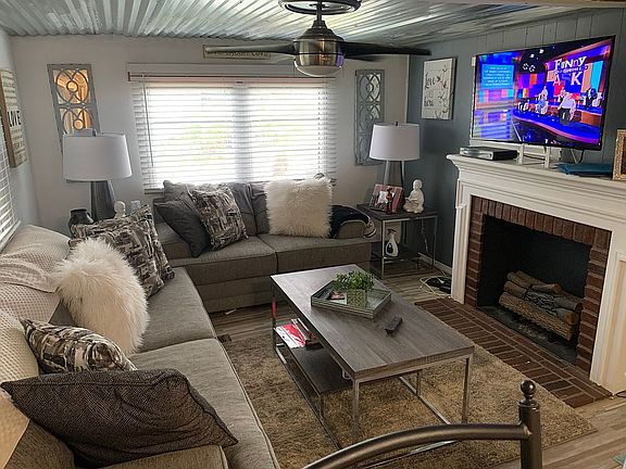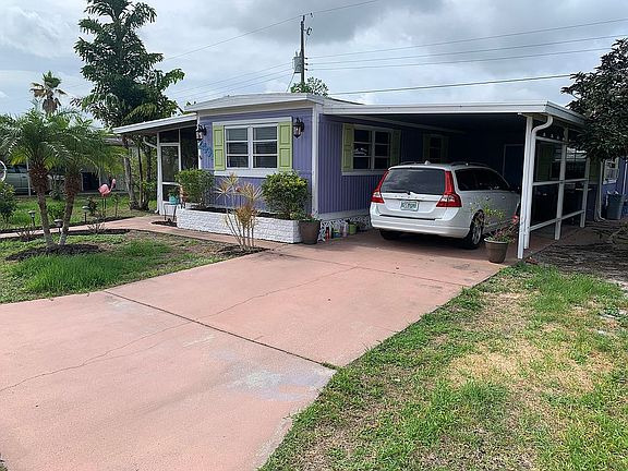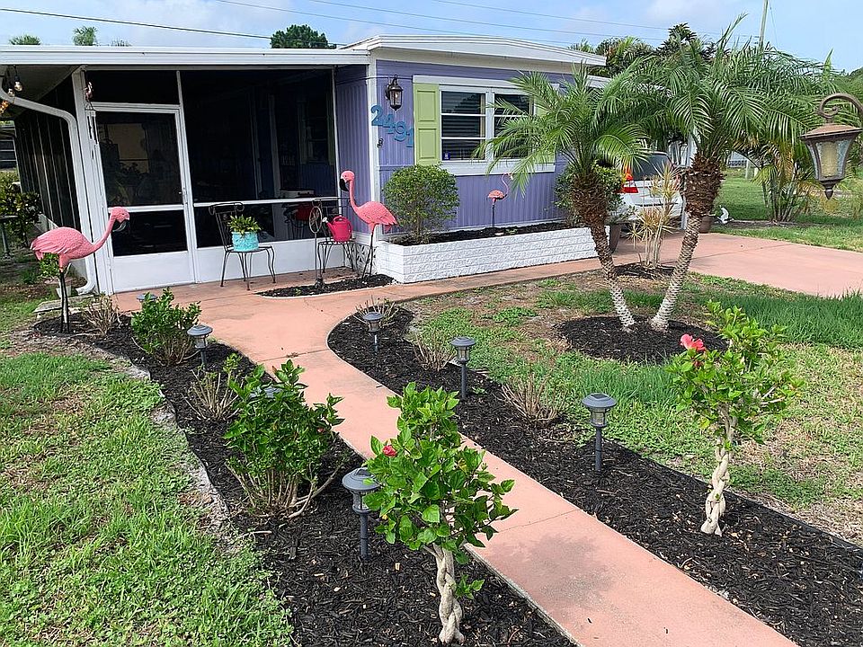 two bedroom one bath fully furnished mobile home on a double lot. this home is located in a 55+ Community with a nice clubhouse, heated pool and other activities and amenities. 3 miles from the beach, 2 miles from 75, this home is a single wide with a added on bedroom amd full size laundry room and a fully screened in lanai the length of the whole trailer. they all weather roof was put on two years ago. Has a lifetime warranty. Central air. All black stainless steel fingerprintless appliances. about two years old. washer and dryer not included. living room furniture is less than a year old. this home has a 3ft , 10ft wide garden pond. attached shed with tons of tools and xmas decorations. all of the furniture and TVs on the lanai are included as well as all the TVs in the house. All are flatscreen 4K. The lot rent is 658$ a month, the mobile home park is on well water, so no water bill. The electric runs about $100 a month during the summer and about 68$ during the winter. Pest control included for a small price as well as lawn care. you have one neighbor on one side of the house and a vacant lot on the other so you’ve got plenty of privacy. There are only about five houses on the street. we are moving to relocate for a job. The house is ready for a new chapter..