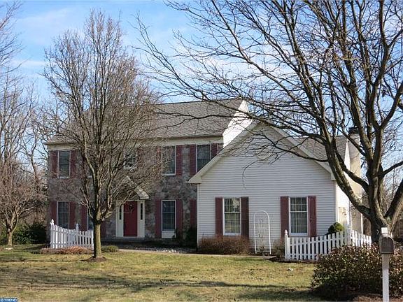 Premium Homesite ~ .45 acre wooded lot! This spotless home is move in ready and many rooms have been spruced up with a new cost of paint! A new roof was added in 2015. Located in lovely Jamison Hunt you can enjoy some leisure time spent biking, walking, fishing, or playing tennis ~ ALL are located in this community, with NO ASSOCIATION FEE! As you enter this stately stone front home you are greeted by an open and airy two story foyer with oak staircase and hardwoods. A convenient first floor office, double closet and powder room lead you into the heart of the home, the wonderful open kitchen, breakfast room and family room. The family room with cathedral ceilings, triple window seat and lovely floor to ceiling stone gas fireplace. The kitchen is a terrific size, with 42 oak cabinets, oversized island, under mounted sink, Meganite antibacterial solid surface countertops, pantry, and tiled floor. A breakfast room with new Anderson slider leads you to the maintenance free 12x20 Azek deck with RDI deck railings, that won't bend or warp! The outside space is picturesque, with panoramic views of the wooded rear lot, the beautiful heated INGROUND POOL and hot tub, the wonderful tiered hardscaping, perennial gardens, provides a perfect setting for relaxing or entertaining. An aluminum fence surrounds the pool area. Another great place for entertaining is the spectacular finished walk out basement with bath, game room and professional office. The Master Suite has cathedral ceilings, a large walk in closet, master bath with soaking tub with his and her sinks. Three additional bedrooms and guest bath complete the 2nd floor space. For the car enthusiast an oversized 2 car garage with EXTRA BAY is a perfect spot for any extra parts and tools, gas heat, a community park and walking trail. A Wonderful Place To Call Home!