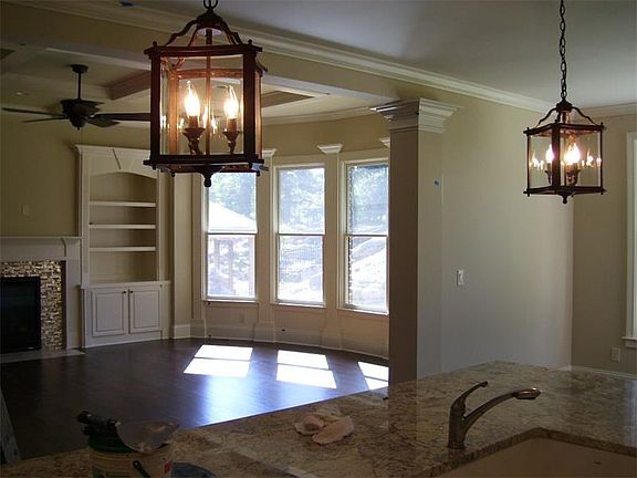 America's Best Builder Award. Builder of the Year Award. Rocking chair front porch. Newest floor plan with 8 foot kitchen island, gleaming white cabinets, stainless appliances, pocket office off kitchen. Mudroom with built- in storage unit. Oversize walk-in pantry. Formal living and dining rooms. Guest suite on main with access to full bath. Vaulted bonus room upstairs. Private backyard.