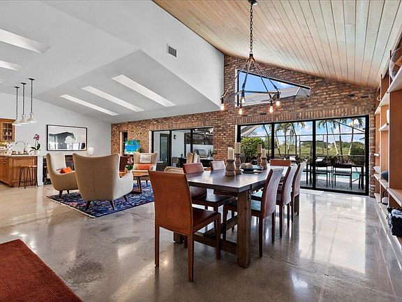 Bask in unparalleled luxury in this stunning oversized corner property, featuring an expansive covered patio, pool, and spa. This 3-bed, 3-bath retreat boasts a modern aesthetic with chic concrete floors, high ceilings, and stylish Chicago brick accents throughout. Experience sophistication and comfort thanks to illuminating skylights, a large kitchen with stainless steel appliances, and a lavish cabana bath. Every detail has been meticulously designed with industrial boho vibes, from the gorgeous wood-burning fireplace to the eye-catching stairway with a sizable loft and an office nook underneath. The custom-built shelving and exquisite wood accents enhance the charm and wow factor of this incredible home. The sprawling primary suite offers a true sanctuary with wood tile flooring, two walk-in closets, and a private patio. Relax in the spa-like master bathroom featuring separate dual sinks, a huge shower, and elegant wood features. Step into a world of serenity and seclusion within this private residence, offering tranquil escapes in every corner and breathtaking sunset views of the surrounding dunes preserve and water. The pool and spa area are true centerpieces of relaxation and entertainment, providing a serene oasis for unwinding after a long day. Nestled in Palm Beach Polo & Country Club with the Dunes preserve as your backyard and convenient access to the horse show grounds, shopping, and dining. Don't miss out on this remarkable home! A few more recent updates: Pool resurfaced 3 years ago New salt filtration system 2024 AC 6 years old Refrigerator replaced 2023 New pool heater 2025