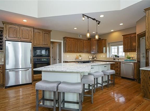 Summer sizzler ready to flip those burgers in the updated kitchen with huge island to gather around. Easy clean up with granite countertops,hardwood floors and loads of cabinets and large pantry. Light and airy, open floor plan with gleaming wood floors, separate dining area, oversized master with fireplace, step in shower, separate tub, spacious walk in closet on main level and office with french doors perfect for those zoom calls. Lower level boasts another fireplace in the rec rm, two bedrooms and 1.5 baths, tons of storage space. The cul-de-sac lot has a custom stone patio with eastern exposure and ready for entertaining. This fabulous reverse has been beautifully cared for with neutral decor throughout.Convenient location with easy hiway access, grocery and restaurants nearby. Get ready to jump into the neighborhood pool take advantage of the biking/hiking trails. 2021-05-20