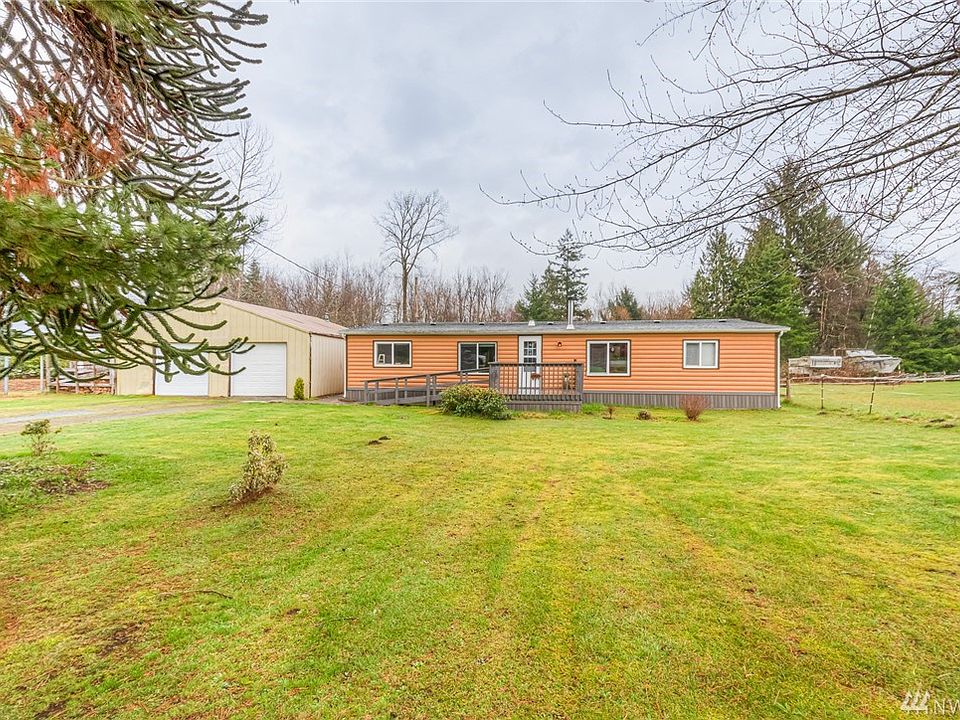 Country Living at it's best east of I-5 in Arlington. Five acres near equestrian center and close to I-5. Cozy 3 BR home with log siding and updated interior flooring, free standing wood stove, heat pump, deck, and nice outbuilding/shop. Enjoy the privacy of living on 5 acres on a private road with room for your horses or livestock. Large fenced dog area. Don't delay on this one, it won't last!
