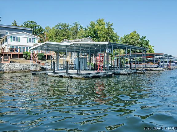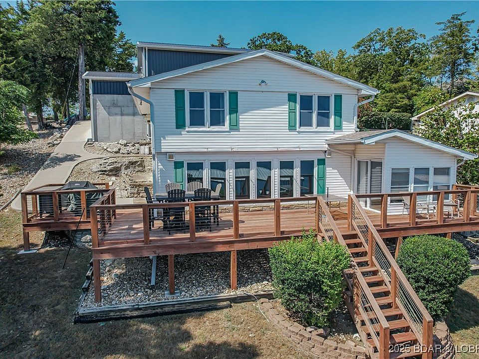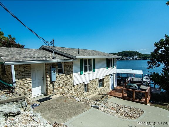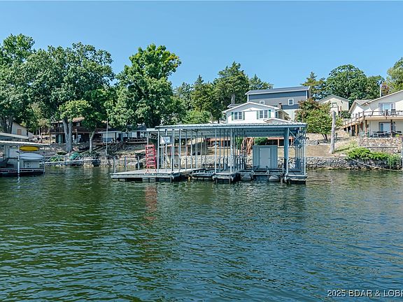 Dramatic Southern views greet you from the living room or lakeside decks on this 4 bedroom home on the Gravois Arm. Close to movie theaters, groceries, golf, church and about anything you desire by land or water. Almost no steps from house to waterfront. Large concrete parking area with huge 30x40 garage/ shop plus smaller golf cart garage attached. Large concrete dock has 2 boat slips plus double pwc slip. House is currently scheduled to have new gray vinyl siding & black shutters installed (see proposed color photo in listing).