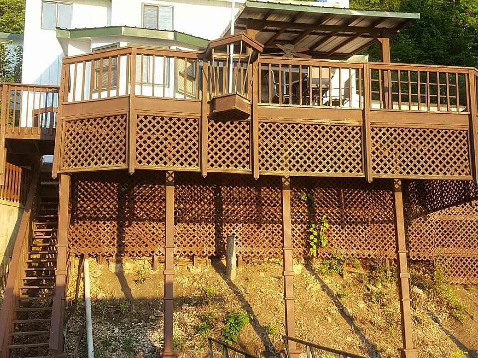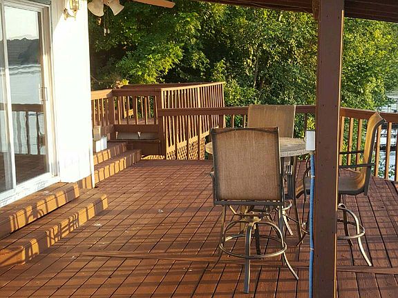 WOW! What a view!!! Excellent opportunity to own your own piece of paradise at this very affordable price! Nice home on lake front with a dock! 3 bed 2 bath up stairs and nice kitchen with oak cabinetry on main level. Open floor plan on bottom level with spacious living room on lakeside leads to entertaining decks, one open and one covered. Storage shed included. Don't hesitate on this one!