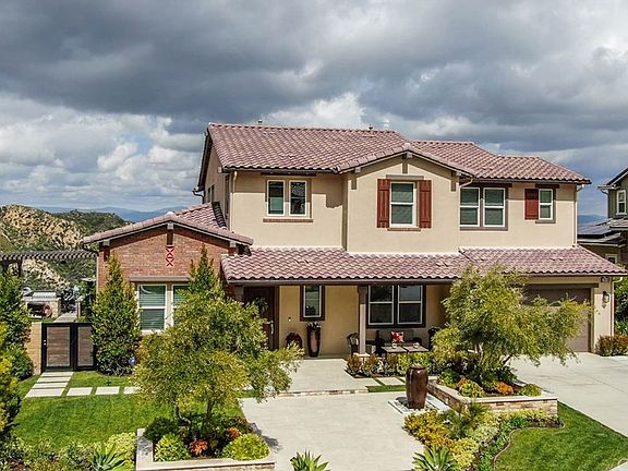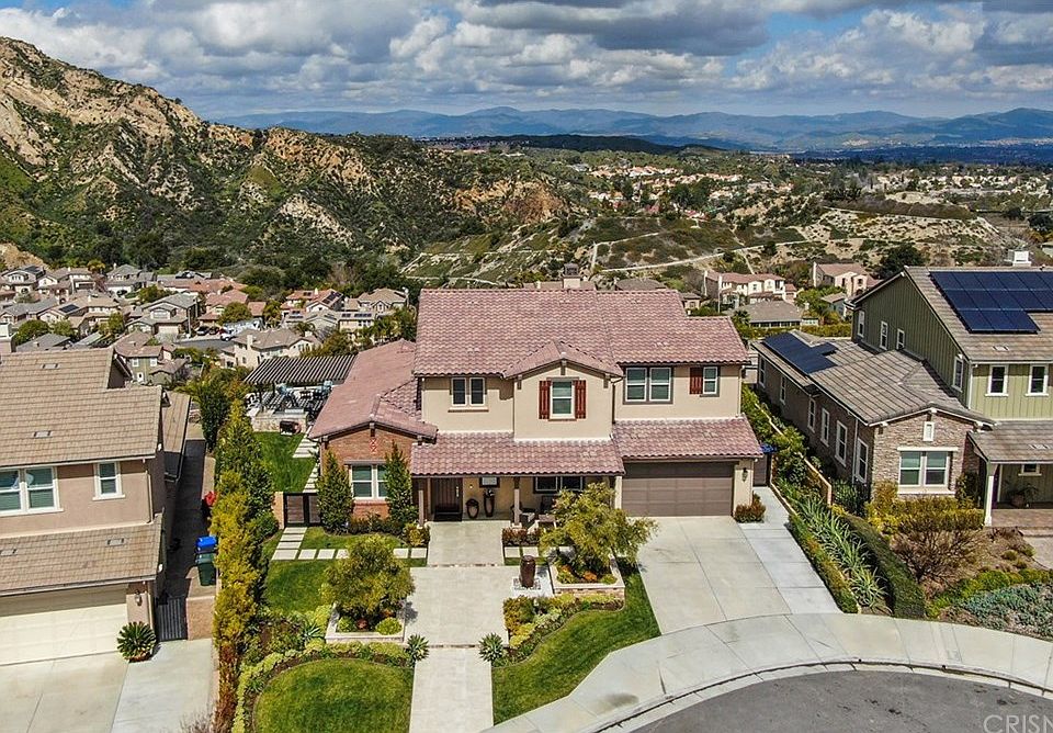 INCREDIBLE, ONE-OF-A-KIND, PANORAMIC AND JETLINER VIEWS encompass this beautiful property located in the most desirable and prestigious area of Stevenson Ranch above Southern Oaks! This amazing home features an open floor plan, an indoor/outdoor living space with accordian doors lending itself to the outdoor space to enjoy the resort-like backyard with zero-edge infinity spa/baja, huge sunken firepit area, outdoor kitchen with all the amenities, and a grassy play area. The interior has been customized with wood-like porcelain tile,