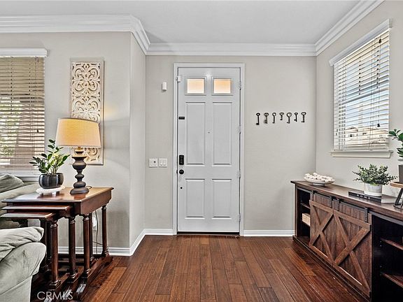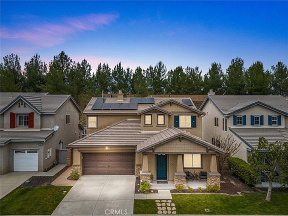 Welcome to your dream home! This fully upgraded 4-bedroom, 2.5-bathroom stunning home in Corona is sure to impress from the moment you arrive. Step inside to discover an open, light-filled, and airy space with high ceilings, crown molding, and beautiful wood floors. The front of the house has a spacious formal living and dining room. The remodeled kitchen features nearly new stainless-steel appliances, an oversized walk-in pantry, white quartz countertops, an oversized island, and an extended custom serving counter, offering plenty of counter space. It opens to the family room, which includes an upgraded gas fireplace, custom shiplap behind the TV and it's prewired for surround sound. A convenient remodeled half bath is located downstairs. Upstairs, you'll find all four bedrooms and two full bathrooms. The primary ensuite features a spacious bathroom with a jetted soaking tub, a glass enclosed stand-up shower, and a large walk-in closet. The 3-car tandem garage, with a new insulated overhead door installed just a year ago, features Wi-Fi technology that is able to be control remotely. The home has Solar panels which reduce energy costs, making this home environmentally friendly. The beautifully landscaped backyard, with an Alumawood patio cover with a ceiling fan, and no rear neighbors, is perfect for outdoor gatherings and relaxation. Additional upgrades include a newer water heater, AC, and furnace, ensuring year-round comfort. This home combines style, functionality, and sustainability in one perfect package. Don’t miss the opportunity to make it yours! The community has LOW HOA fees, which includes pools, fitness center, clubhouse, multiple walking trails, and a variety of parks. Deleo Regional Sports Park is centered in Sycamore Creek offering NEW PICKLEBALL COURTS, NEW BMX BIKE PARK, Skate Park, Dog park, Soccer & Baseball Fields, Tennis & Basketball Courts, BBQ’s & Picnic Areas! Sycamore Creek residents enjoy close proximity to shopping, dining, golf courses, hiking trails, nearby 15 freeway access and GREAT SCHOOLS.