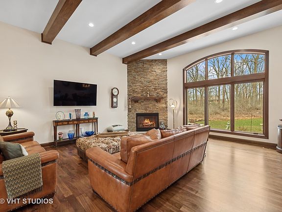 WELCOME TO 2492 BRENTWOOD DRIVE OF THOUSAND OAKS ESTATES... An exceptional custom built ranch showcasing attention to every detail. Stunning mahogany entry door introduces the foyer of this impeccably built home featuring elevated doors and ceilings, arched case openings and rich un-steamed walnut floors. The office is dressed in stylish wool carpeting and accentuated by a cherry coffered ceiling. Enjoy the generous living room space highlighted with arched Pella windows, a stacked stone fireplace and dramatic oak beamed ceiling. The kitchen is beautifully equipped with custom cherry cabinetry fitted with brass hardware and Quartzite countertops and tile backsplash. High-end Wolf, Cove and Sub Zero appliances compliment this gourmet kitchen along with its expansive island. A spacious dining area leads out to the four season room- the perfect place to retire at the end of the day with serene wooded backyard views. French Doors introduce the primary suite accented with double tray ceilings, crown moldings and sophisticated wool carpeting. The bath is truly a lavish retreat featuring his & her sinks with designer brass fixtures and sconces. The lux walk-in shower is equipped with a zero threshold entry, linear drain, and conveniently placed heated mirror. Primary suite continues with its expansive walk-in closet offering a Quartzite topped custom vanity and closet organization system. Two additional bedrooms and full guest bath complete the home along with a well placed laundry room outfitted with high-end wash & dryer and, custom cabinetry with cast iron service sink. The oversize three car garage is equipped with electric car charging station, polyaspartic floor coating, hot & cold faucets, and built-in cabinetry. The home is perfectly positioned just minutes away from Lake Geneva, Metra train and shopping. Sellers have invested over $1,025,000 in this thoughtfully designed home and it is a pleasure to experience. Property Assessment Successfully Appealed! and will reflect on 2024 Tax Bill.