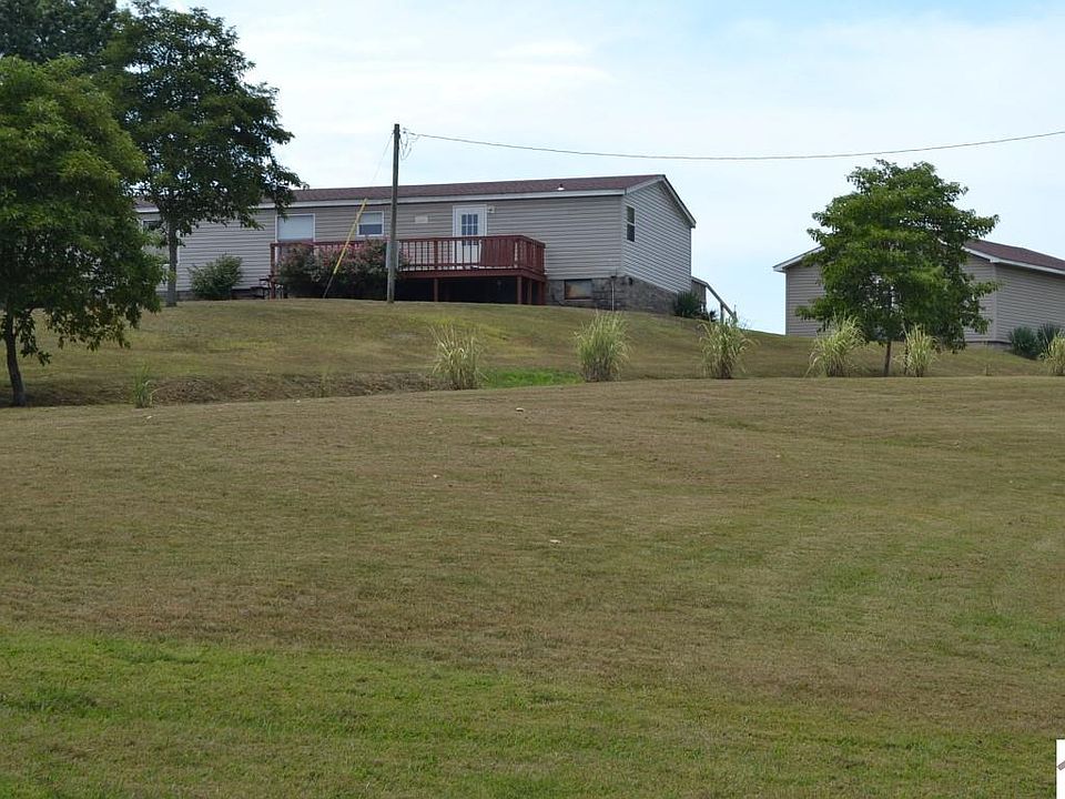 This home is almost 2000 sqft with an open living area, large rooms, 9ft vaulted ceilings, large covered porch, above ground pool & gazebo. 2 car detached garage--New roof in 2016--New sewer lines in 2014--Gorgeous views! 6 open acres! Stocked Pond! Close to Kentucky Lake!! What more could you ask for?