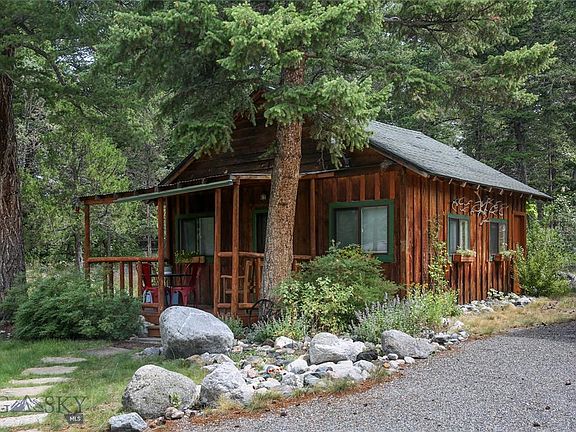LOCATION LOCATION! A rare opportunity to own a wooded retreat in the Pine Creek area of Paradise Valley. This well maintained home has been artfully updated through the years with earth-toned elements that compliment its original mid-century design. The master suite was added in 2009 and includes a walk-in closet, 3/4 bath with tile floor and shower, and radiant floor heat. The kitchen was updated in 2016 to include a small dining area and pantry. The large windows in the spacious living/dining area enhance views of the heavily wooded lot and mountains. Enjoy the sounds of Pine Creek as you relax on the shaded patio or inside the house. Full basement with full bath and wood fireplace is ready for an update. Two detached garages will hold 5+ cars or toys. The studio cabin is a completely charming addition to the property! Close to the Yellowstone River and popular hiking trails, about 10 minutes to Livingston and 40 minutes to Yellowstone National Park, and an hour to the airport.