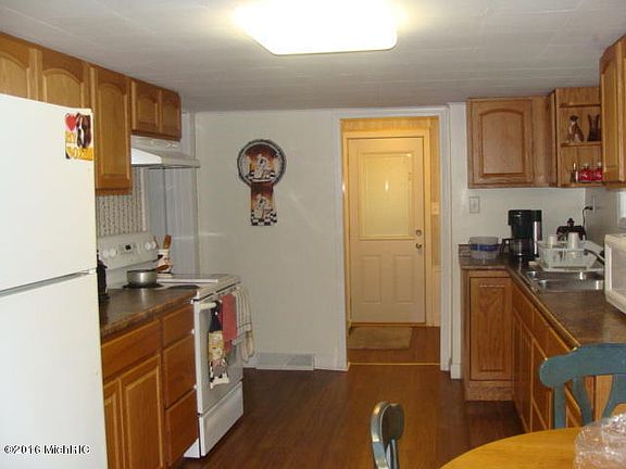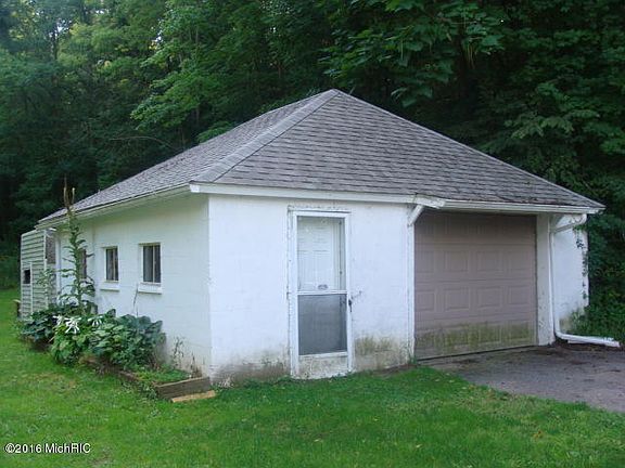 Wooded 1.6 acres conveniently located to the river trail for biking and walking. 30x40 pole barn plus 1/2 stall detached garage. Main floor laundry, 2 bedrooms. Includes refrigerator and range.Age unknown.Large enclosed front porch.