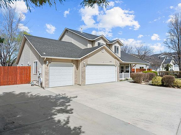 Location, Location, Location! Beautiful well maintained home in the desirable Thousand Springs Subdivision. This home sits on nearly a quarter acre with gated RV parking. A hard to find 5 car garage with a pull-through door. Enjoy the outdoor space with a north-facing fully fenced/sprinkler backyard, extended covered patio w/ misters to cool you off on those hot days, mature trees, garden space and shed. Living room with gas fireplace and separate spacious family room. Kitchen and Dining area w/ hardwood floors. Breakfast bar. Master bedroom features walk- in closet, updated master bath w/ tiled walk-in shower, dual sinks w/ quartz counters. Newer carpet upstairs. Plumbed for Central Vac. Low maintenance vinyl siding. Downstairs office with closet, could be 4th bedroom. Home warranty provided upon acceptable offer.