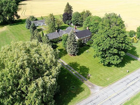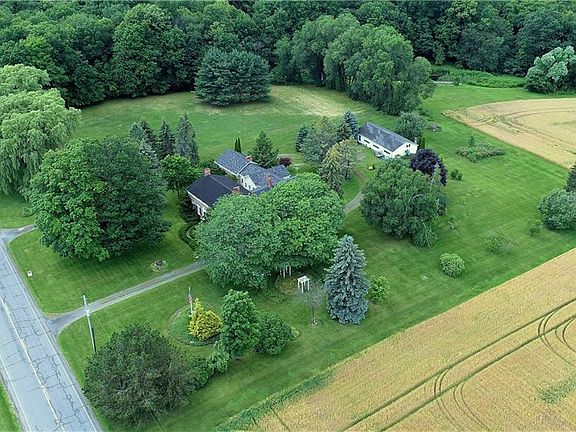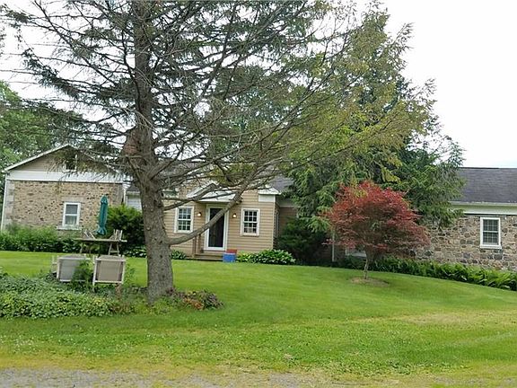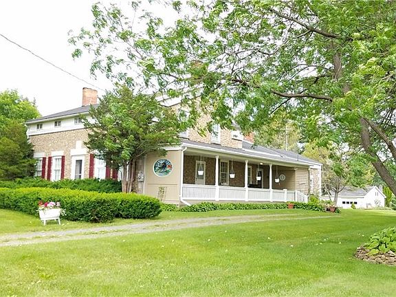 Stately Cobblestone Home in so much of its original beauty, on 4 acres of beautifully landscaped ground w/mature trees in the Heart of the Finger Lakes Region! The main portion of the home offers 2-3 Bedrooms & 1.5 BA. The rear portion, historically remodeled & connected in the 90s, could easily be a perfect in-law/apt set up & offers 1-2 BR, 1 BA & vaulted ceilings add character! Wood Plank Flrs, Inviting Fireplaces (1 is Flr to Ceiling), Build Ins, Walk Thru Pantry & Much More! This home has the "looks" AND the Mechanicals! Well maintained heating system, 200 Amp Elec, Central Air. Original Eastern Porch Restored & includes $6K stained glass piece. 3 Car Detached Garage, Garden House & Old Milk House. Just 10 min. to Keuka Lake & 1 Hr. SE of Rochester. Sq. Ft. is estimated; Come See!