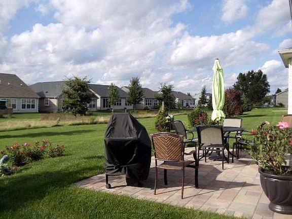 Popular "Monroe" model in Del Webb 55+ active adult community in Premium location backing to grassy area and across the street from a park. Nice kitchen with eating area, 42" Maple Cabinets and pantry. All appliances stay, including full sized washer & dryer. Bay window in master bedroom gives that extra room and the extended garage gives ample storage space. Come for the ''Lifestyle'' w/pools clubhouse, & security