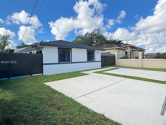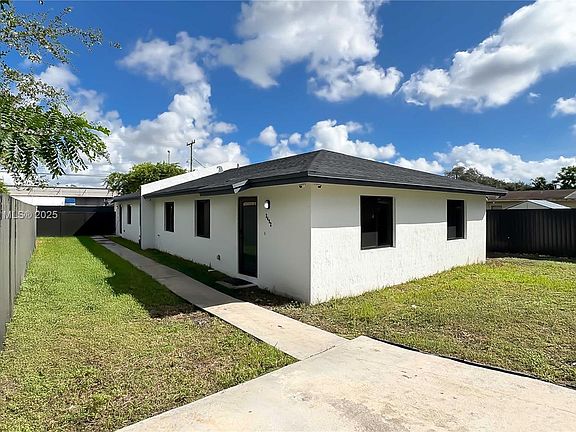 Modern 2022 duplex featuring two units, each with 3 bedrooms, 2 bathrooms, separate utilities, and private entrances. Upgraded finishes include porcelain tile throughout, impact windows/doors, wood kitchen cabinets with quartz countertops, stainless steel appliances, and washer & dryer in each unit. Built with a 2022 shingle roof and all 2022 new appliances. (RVs not included on the rent). Prime location near Wynwood, Jackson Hospital, and with easy access to I-95.