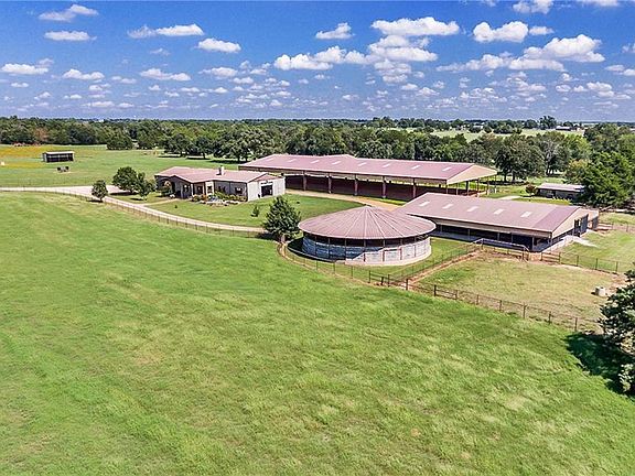 Premier Horse Ranch on 67 acres in a nice area south of Whitesboro. This 1st Class facility has been meticulously maintained & features a tilt-wall show barn with 9 stalls, wash rack, tack room & a large lounge with fireplace, wet bar, utility room & full bath; an 80x80 mare barn with 8-16x24 stalls with center gates to double the stall count & an insulated lab room with double stocks; a 100x210 covered arena & a covered round pen. There are multiple pipe fenced turn out lots & pastures, most with run in shelters, pasture waterers or ponds & the soil is a sandy loam. There's also a 640sf ranch house & a 50x60 storage bldg and shop. The property is picture perfect with several great home building sites.