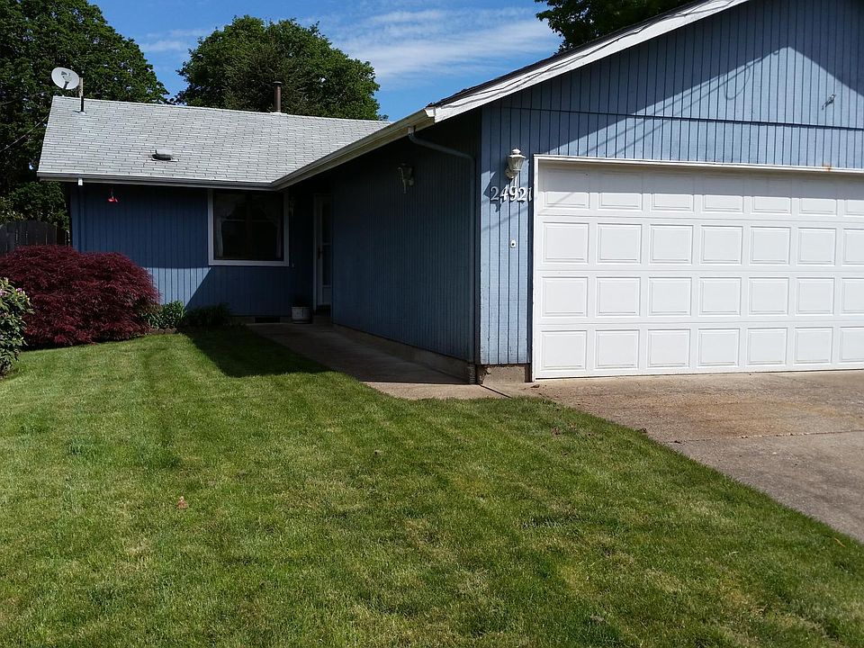 Freshly refurbished 3 bedroom, 1 and a half bath. New paint throughout. new kitchen counters. Eat in kitchen with dining room. Fireplace for Winter. Large fenced back yard with a deck and raised garden beds. Large 2 car garage. 1 Year Lease, Tenant pays all utilities.