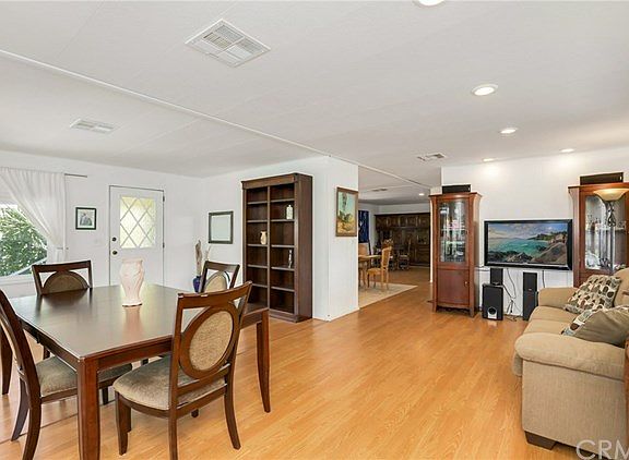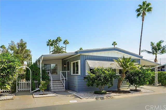 Welcome to the amazing senior park of El Toro Mobile Estates! This beautiful and tastefully remodeled home on a corner lot is move in ready for you. Enter and experience the large open entertainer's floorplan along with a fully remodeled kitchen. Eat at the breakfast nook or the extra dining space. The master suite features a large walk in closet and private bathroom. Both bathrooms have been completely redone with all new tile, toilets, tub, and vanities. The home's entire plumbing has been replaced. Stay cool in the summer with your new energy efficient AC unit. Enjoy the fig, orange, tangerine, and peach trees along with the grape vines and raised garden planters, all set up on the automatic sprinkler system and outdoor lighting. There is also an extra outdoor storage space with three separate compartments. This home has been completely remodeled and is ready to be enjoyed!There are so many amenities for residents to enjoy: a clubhouse, heated swimming pool, hot tub, sauna, exercise room, Billiards, Ping Pong, Bocce Ball, game room, card room, library, entertainment room for large events, plenty of activities, and so much more!You also are within walking distance to parks, shopping, and a 9-hole golf course!Take advantage of all this incredible senior community has to offer!