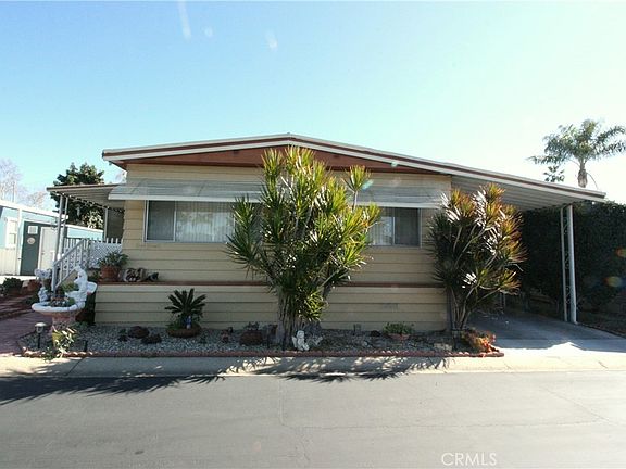 Senior park 55+/18+, space rent is $1,544/Mo. Great Location! located near the clubhouse and pool and across from guest parking. This home has an extra wide lot with a large orange and a a plum tree. The kitchen is upgraded with granite countertops, white cabinetry and stainless steel appliances. The furnace and water heater are new. 2 bedroom 2 bath, den has a wet bar and the living room/dining room has lots of natural light. This home is priced to sell quickly seller is motivated.