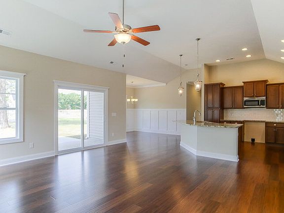 Welcome to WyndWater, Hampstead's newest community. The Cape Fear is move-in ready! This open ranch style plan allows for abundant natural light accenting the spacious great room with vaulted ceiling, gas fireplace, and patio door leading out to the relaxing covered porch and open patio. Beautiful and durable laminate flooring throughout the foyer, living room, DR, and kitchen. The kitchen is awesome boasting staggered 42 inch cabinets, granite countertops, stainless appliances, kitchen island with bar area, pendant and recessed lighting, and adjoining dining area beautifully accented with custom wainscoting. You'll find the master suite delightful with an octagon trey ceiling, large walk-in closet, garden tub with tile surround, tiled shower, & granite top double vanity. The upstairs FR