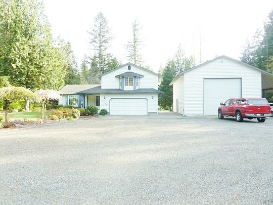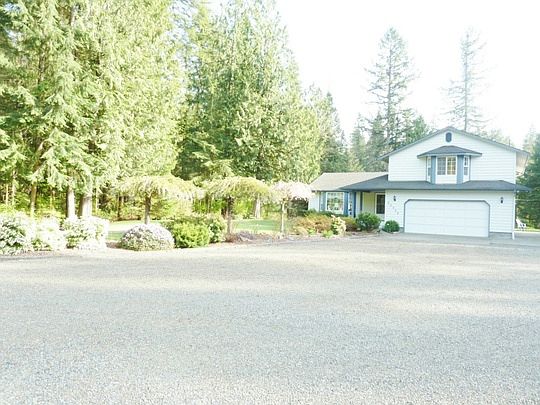 Arlington Country Tri level on 2.27 Acres of private,quiet usable land surrounded by greenbelt on 3 sides!3 bedrm,2.25 bths,Formal living rm w/bay window open to Diningrm w/slider Big kitchen w/garden window.Familyrm w/wood stove.Huge Master w/walk in closet & 3/4 bath.All bedrms are lrg. 2 car attached garage + 28 x 40 ; 1,100 sqft garage w/loft + 11 x 40 covered RV parking. Beautifully landscaped & big yard!New Roof. New Siding, New Paint. Great location close to town!