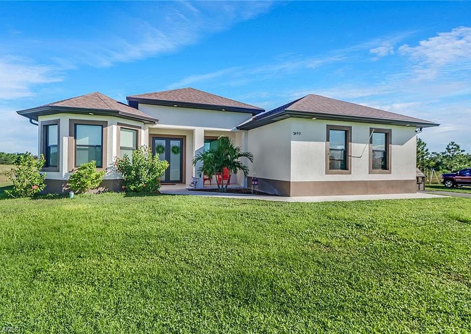 Priced to sell - Motivated Seller - 1.59 acres in the desirable NE area of Golden Gate Estates. Meets County requirements for a GUEST HOUSE! ; this beautiful newly built in 2021- 3 bedroom, 2 bath and 2 car garage is move in ready. House has bright open floorplan with granite counter tops, stainless steel appliances, upgraded refrigerator and newer washer and dryer. Tray ceiling, walk-in closet in primary bedroom. Tile throughout, crown molding, impact windows, automatic irrigation and asphalt driveway. Very well located with immediate access to Everglades and Immokalee Rd, Publix, CVS, and Big Corkscrew Island Regional Park just to mention a few conveniences! Bring trucks! NO HOA fees! Ready set GO!