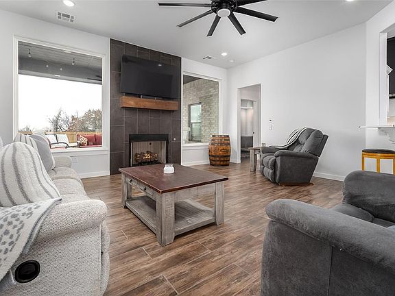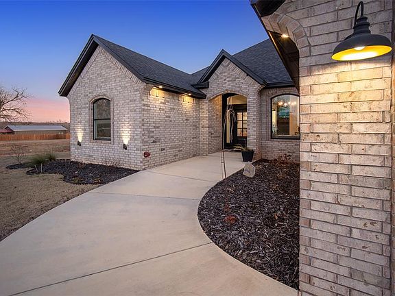 Come take a look at this beautiful custom home sitting on 2.5 acres (MOL) of unrestricted property. As you enter the home you will see tile wood-look tile flooring throughout. The kitchen has ample cabinetry that expands ceiling height for extra storage, a large farmhouse sink, stainless steel propane cooktop and gorgeous quartz countertops to tie it all together for a modern look. From there, you can see the warm glow of the fireplace that is the focal point of the large living room. The main bedroom has a large en-suite bathroom with a shower that is tiled from floor to ceiling as well as separate sinks and a walk-in closet. On the other side of the home, you will find the secondary bedrooms that are split with a large hallway bathroom that has a tub and tile shower combo. There is a laundry room right off the garage and a pantry large enough for a wine/mini fridge and kitchen appliance storage. The back patio has a concrete extension and is set up to accommodate your future outdoor kitchen, pergola and hot tub plans! There is also an inground storm shelter just off the patio.
