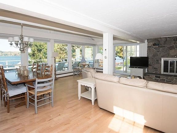 Breathtaking lake views! This charming lakefront year round 3bd 2.1ba is move in ready. The home features open floor plan with the "feel" of being literally on the lake with it's wall of windows that capture the expansive view, wrap around deck, lakeside gazebo and lakeside large deck (perfect for outdoor entertaining) as well as a permanent dock beside the lake and landscaped yard. The updated kitchen w granite counters spend to the great room with wood burning fireplace. All baths have been recently completely renovated, hardwoods throughout first floor, possible 1st floor bedroom, master suite w lake view, walk in closet and beautiful bath as well as a loft ideal for quiet lakeview hide away. The walk out basement w view and fireplace is another option for entertaining. 2 car garage