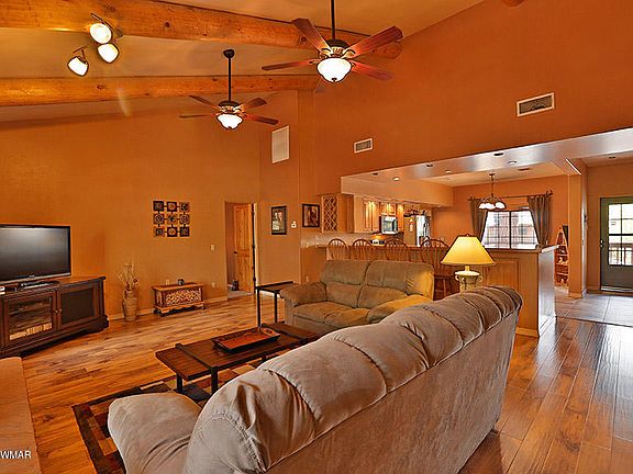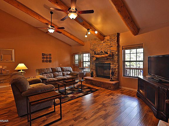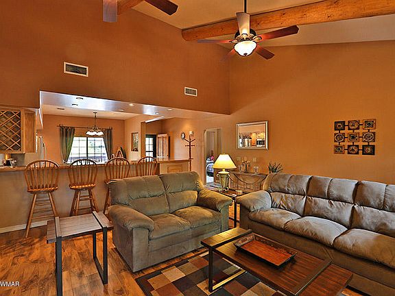 In the gated community of The Village, this condo had extensive remodeling done in 2012 to include: engineered wood flooring, 18'' porcelain tile in kitchen, laundry & guest bath, slab granite kitchen, composite sink, upgraded stainless steel appliances, carpet and interior paint. Vaulted ceiling in living room has beautiful log beams and upgraded ceiling fans. Stack stone wood burning fireplace. 2'' wood blinds on all windows. Rear deck is like sitting in a tree house. Furniture available by separate agreement. One of the sellers is a licensed Realtor in AZ and currently manages the HOA. HOA includes water, insurance, trash, exterior maintenance, landscaping and snow removal. Furnishings available by separate agreement.