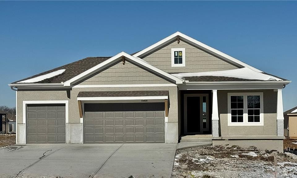 NEARLY FINISHED with a March completion date! Introducing the new Fairfield Expanded by Inspired Homes! This fantastic Reverse 1.5 Story now boasts over 3,000 SF and includes a low maintenance deck with aluminum railings, composite decking & stairs leading down to a lower patio. Inspired Homes also includes extra deep garages, 8’ garage & front doors, irrigation systems, garage openers, gas range cooking with built in SS appliances, low-e Pella windows and doors, custom wood cabinetry, tray ceilings; and the list goes on! Designer options feature a lower level fireplace & wet bar, wood trim ceiling & wall details, upgraded lighting, upgraded quartz countertops, built-in cabinets & shelving in great room, direct access to laundry room from the primary closet, and a HUGE walk-in pantry! The Huntford community offers oversized 85'+ wide lots surrounded by mature trees and adjacent to Prairie Highlands golf course. Low HOA fees and less than 10 minutes from K7/I-35 highway and a short drive to Lake Olathe, Prairie Center Nature Preserves, KC Winery, and the NEW Cedar Niles Trail system!