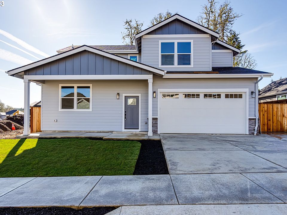 Brand new construction in Veneta! Welcome to Madrone Ridge the newest development in Veneta. The Brentwood floor plan has3 bedrooms (possible 4th) | 2 and 1/2 baths | 2096 sq ft Entertaining will be easy with the huge kitchen and great room floor plan with vaulted ceiling. Kitchen has ample storage space, quartz countertops, gas cooking, stainless steel appliances and white cabinetry. The living area has a gas fireplace, built in cabinetry, large windows with transoms and a slider to access your patio with a fully landscaped backyard. Nice sized laundry room with quartz countertops. 11x11 Office/flex room with French doors and high ceiling. Upstairs has 3 bedrooms and 2 bathrooms. Main suite has vaulted ceiling, walk in closet, custom tiled shower and dual vanity. All closets have built-in shelving. On Demand propane hot water heater. 1 year builder warranty. 19x22 oversized garage. Finished front yard and back yard landscaping with underground sprinkler system.