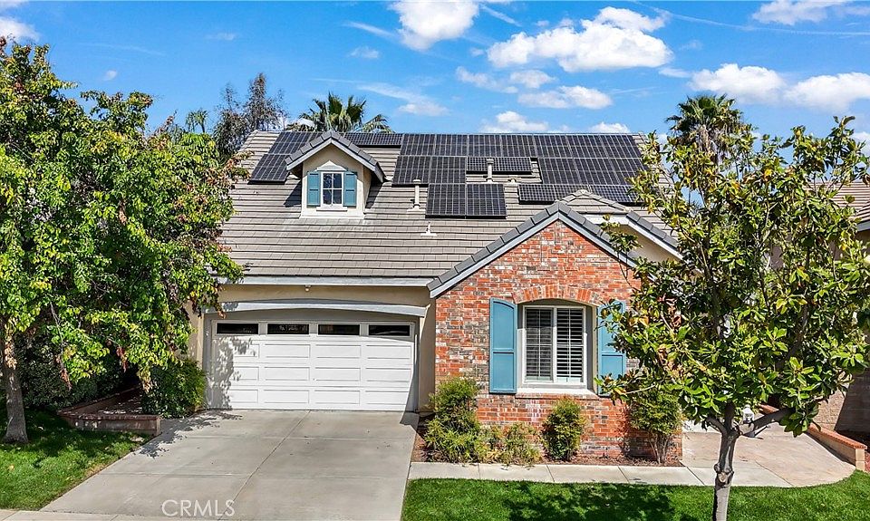 This two-story South Corona home in the heart of Sycamore Creek . When you enter the home be ready to fall in love with this 3 bedroom, 3 bathroom, plus a loft upstairs. .Say good-bye to sky-high utility bills with Solar Panels. This home features Central Air and heat The living room has vaulted ceilings, recessed lighting, new laminate flooring on lower level, carpet upstairs, and open staircase that spans across to the upstairs loft. The kitchen has granite counter tops, and center island. On the first floor you will find one bedroom currently being used as an office with a full bathroom down outside of room in hall. The Master bedroom is on the first floor has a ceiling fan, big walk-in closet, a primary bathroom with double sinks, shower, and jet tub. Laundry room with lots of cabinets plus washer and dryer staying . Fireplace in Family room great for entertaining which leads to backyard. As you walk up stairs there's a loft area and a bedroom with a bathroom down the hall. As you drive up to the property you will notice a nice yard with newly planted grass with nice trees view of Sycamore Creek Sports Park .Stepping into the backyard is very low- maintenance with a decorative concrete floor all the way around and a wooden fence. There's an area on the side of the house with a vinyl gate for a dog run area, planters with plants, and Citrus Fruit trees. This house has some great upgrades from Solar Panels, Plantation Shutters, Above Storage Racks in garage, and Central Air and Heat. Walking distance to Todd Academy School along with a sports park. Sycamore Creek Association has the lowest monthly HOA fee which features a nice leisure pool, community center, lap pool, Kiddie play water area, parks, walking trails, Security Patrol, lots of activities, and a gym. You are nearby many shopping centers, and I-15 . Freeway. Great Opportunity for buyers must see......