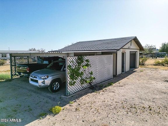 Welcome to your desert oasis! NO HOA! Perfect for enjoying the peace and quiet. The property has a detached garage with an additional room that can be used as storage/office. The garage has an attached 2 car covered patio. There is plenty of room for a second home to be added. The property is perfectly located near the interstate, gas stations and more.