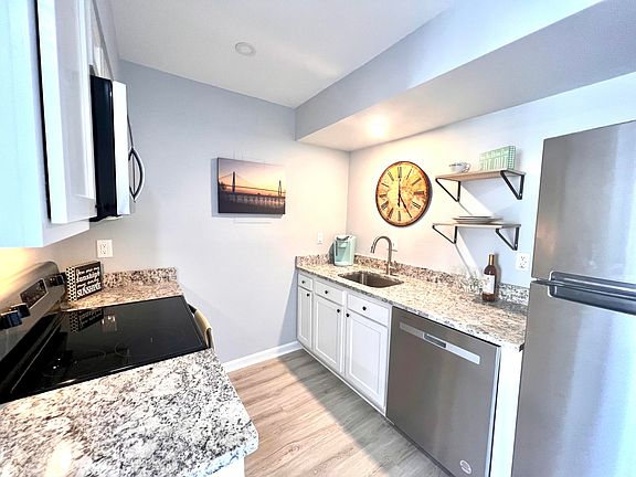 Gorgeous and move-in ready..this condo is a perfect place to call home or to offer for a wonderful rental opportunity. Totally refurbished with all new baseboards, doors, upgraded flooring, and paint throughout. Brand new cabinets, granite, and appliances in the kitchen accented with new recessed lighting. HVAC replaced in May 2023.Bathroom has new shower and glass doors plus new toilet and modern vanity with matching mirror and vanity light. Fabulous glass barndoor sliders add a touch of elegance to the en suite in the super spacious bedroom complete with all new lighting to include remote controlled ceiling fan. All the ceilings have been smoothed and painted, also. Spectacular color selections, thoughtful details, and ready to close. Don't miss out!
