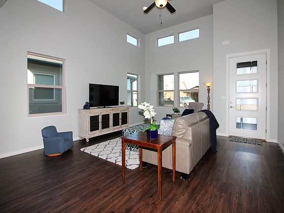 Spacious and comfortable, this home is just as attractive on the interior as it is on the exterior. The living room features 14' high ceilings and transom windows that add volume and natural light to the space. An open floor plan allows easy traffic flow, while counters in the kitchen and laundry/mudroom offer ample storage and workspace. Enjoy outdoor entertaining on the covered patio at the back of the home. All hallways, doorways, and rooms are designed for wheelchair access. Contact the builder for other accessible-friendly options.