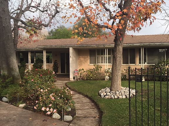 This Mid-Century Home has been tastefully remodeled & updated. The Kitchen includes custom cabinets, Quartz countertops & top of line appliances including a wine refrig. The house has refinished wood floors throughout, a Bright and Open floor plan. The Master Suite retreat with walk in marble double shower, custom vanity sink & more. Living room with FP & walls of glass that open onto a large private courtyard with built in BBQ & wonderful mountain views. Designer palette paint, updated plumbing & electrical all located on an expansive size view lot in a great Altadena neighborhood. The property has a circular driveway and professionally landscaped grounds with mature trees. A Must See Property.