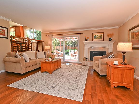 Beautifully upgraded family home on a quiet street in the wonderful Bollinger Hills neighborhood. This original owner home has been meticulously maintained. Upgraded kitchen with gleaming granite countertops, backsplash, stainless steel appliances, and beautiful wood cabinets. Three remodeled bathrooms. Home was continuously renovated between 2002 through 2022. Convenient downstairs bedroom and full bathroom. Spacious family room has a new fireplace with wood mantel and raised tiled hearth. Private landscaped backyard with synthetic lawns, wood deck with wood patio cover. Large living room and formal dining room. Breakfast nook is open to the kitchen and family room. Upgrades include: full landscaping in 2022, hardwood floors, dual pane Milgard windows throughout, crown moldings, closet doors, concrete overlay on walkways and driveway, concrete tile roof, recess ceiling lights, whole house attic fan, window shutters and Venetian blinds. Bollinger Hills has a community pool, playground, tennis & pickleball courts, picnic area, clubhouse.