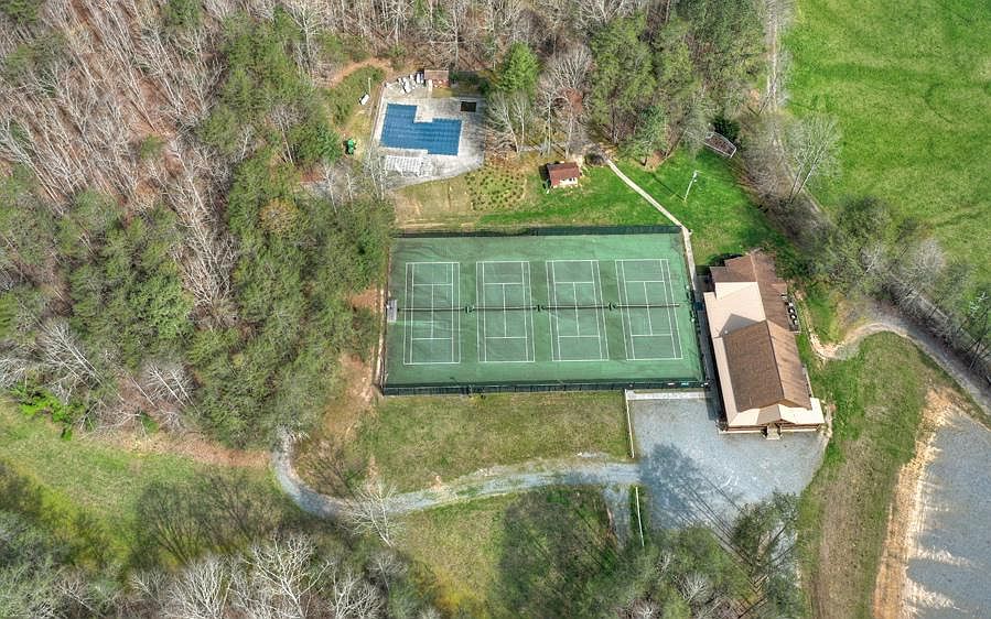 Large Event Hall and center - commercial property - massive parking on site- Amazing Opportunity and Endless Potential...this property is just minutes from historic downtown Blue Ridge, yet tucked away on gentle and picturesque property with all paved access and plentiful parking...located adjacent to established and inviting Bear Claw Vineyards, this would make an excellent events venue, restaurant, lodging, & more...attractive building with rustic appeal features large banquet/meeting room with fireplace, full kitchen, private baths & locker rooms, den area, & expansive covered porch...pool house with dressing & shower areas leads to olympic size pool complete with sprawling sunny patio overlooking multiple tennis courts & mountain views...towering hardwoods, outdoor pavilion, babbling creek & gorgeous grounds...this has the makings of a perfect investment or business opportunity and is ready for your ideas!