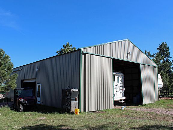 Amazing 5bd, 3 ba custom built house on 40 acres that can be used as residential, hunting lodge, B&B or a Black Hills get away. Custom built while being out of town and enjoying the privacy and wildlife. Property has its own private well! Main level living with 2 living areas, 2 wood stoves, 1 pellet stove, Master Suite, full bath, laundry room and sunroom. The custom made log stairs lead up to 3 additional bedrooms, bathroom and office area. The 3rd bedroom upstairs leads out to the wrap around deck with views on a clear day to the Big Horns and Inyan Kara. Huge shop, barn with tack room, loafing shed and more.