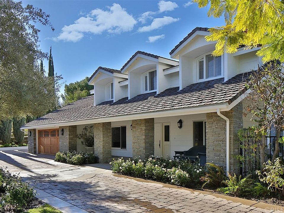 Beautiful traditional style 5 bedroom 5 bath equestrian property behind the gates of Hidden Hills. Trees and hill views from almost every window. The house boasts nearly 4000 square feet of living area including living room, dining room, and a chef's dream kitchen with large center island, Sub Zero and Viking appliances, granite countertops, cozy breakfast nook with bay window. Kitchen expands into a family room with french doors that lead out onto an entertainer's back yard with pool, spa, built in fire pit, grassy area, and extensive patios perfect for outdoor entertaining. Master bedroom has large walk-in closet complete with builtins. Follow the rustic railroad tie steps to the lower pad where you will find a variety of fruit trees, and equestrian facilities including a barn with two stalls, grassy turnout area, tack and storage rooms, and grooming station. This area can also be accessed by car on the street below or by stairs from the main house.