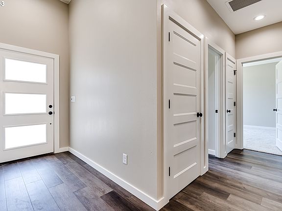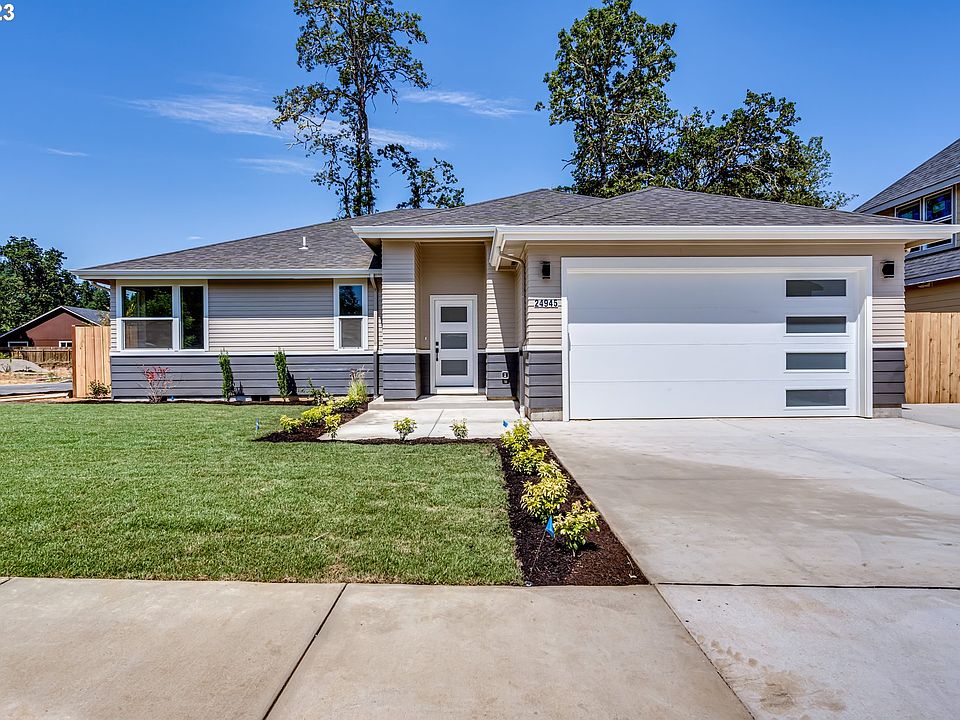 Barely lived in new construction home for sale in Veneta! Modern design and amenities throughout. 1708 sq ft 3 bed & 2 bath. Gourmet kitchen with Wolf convection double ovens, Thermador gas cooktop with a pot filler, Jenn-Air fridge, white quartz and tile backsplash & breakfast bar. Tankless water heater. Propane gas cooking & fireplace. Primary bedroom has huge custom tile shower & walk in closet. Ample storage. Fenced backyard has covered patio. Landscaped with sprinklers. Fenced RV Parking.