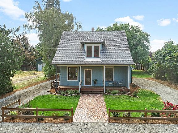 This 1901, 3 bed/2 bath, 1,581 sf farmhouse zoned UR2 .33 acre home has been lovingly restored and updated to a bright and welcoming open home while retaining its original charm and character. Easy walk to all The Heights/Hood River area. First floor tall ceilings and a re-imagined large open eat-in kitchen with new appliances is filled with light and perfect for entertaining. The roomy open main room is large enough for both a dining and living room space. Bonus room on the main floor could be used as a dining room, office/den or future bedroom. There are 3 roomy light-filled upstairs bedrooms with new tub/shower bath. A new, 08-24, front yard, old-brick walkway creates a special entrance to the front porch with room to stretch out and entertain. The cozy rear covered deck is the perfect space for viewing the lovely, expansive yard which boasts grape vines, berries, a tree swing and room for a large garden. The backyard is perfect as is or add a huge multi-bay garage/workshop. All NEW in 2021-24: HVAC, Heat Pump, Electrical plus switches/outlet /light fixtures and plumbing throughout. All new Kitchen Cabinets and SS finger-print proof appliances in 2024. The 1st floor bath w/shower was added in 2023 and the 2nd floor bath was replaced in 2023. New main floor 3/4" oak hardwood flooring. New drywall in Kitchen & Bathrooms and artfully restored lathe & plaster walls elsewhere. Unfinished basement area for storage and heating equipment. Exterior Upgrades: 2024 new landscaping, exterior paint, new gravel wrap-around driveway plus RV Parking w/hook-ups/cleanout on West Side. 4 Parking spaces in front and more in the back. New Roof on Garage/Workshop July 2024. Detached Garage used as storage/workshop. Farmer's Irrigation. This property is zoned UR2. Buyer to Do Due Diligence with HR County/City about annexation to the city, adding ADU/Manufactured Home and/or creating separate lots. This is a Must-See charming and very welcoming property! Home Warranty Included