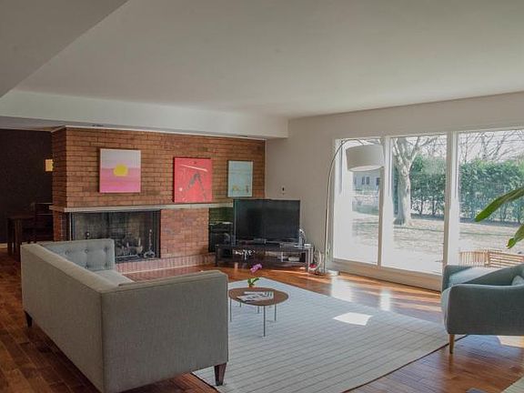 Fantastic open floor plan with floor to ceiling wall of windows in living room. Neat 50's woodburning fireplace. Many updates in the past year to include new wood floors, renovated master bath with huge walk-in shower and awesome contemporary fixtures. Hall bath also renovated with beautiful tile and fixtures. Newer kitchen with granite and Bosch appliances. Sun room has walls of windows and heated tile floor. Lower level finished area has woodburning fireplace and built-in cabinetry & closets. Please see Agent to Agent remarks for Relocation documents.